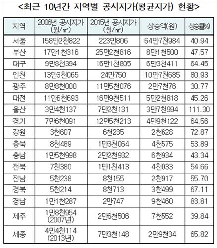 »ó½Â·üÀº °æ³² °ÅÁ¦¡¤»ó½Â¾×Àº ¼¿ï °³²ÀÌ 'ÃÖ°í' (¼¼Á¾) ÀÌÀ翵 ±âÀÚ = °ø½ÃÁö°¡ ±âÁØ Àü±¹ ¶¥°ªÀÌ ÃÖ±Ù 10³â »õ 68%³ª ¿À¸¥ °ÍÀ¸·Î ³ªÅ¸³µ´Ù. 22ÀÏ ±¹È¸ ±¹Åä±³ÅëÀ§¿øÈ¸ ¼Ò¼Ó Á¤¼ºÈ£ ÀÇ¿øÀÌ ±¹Åä±³ÅëºÎ¿¡¼...