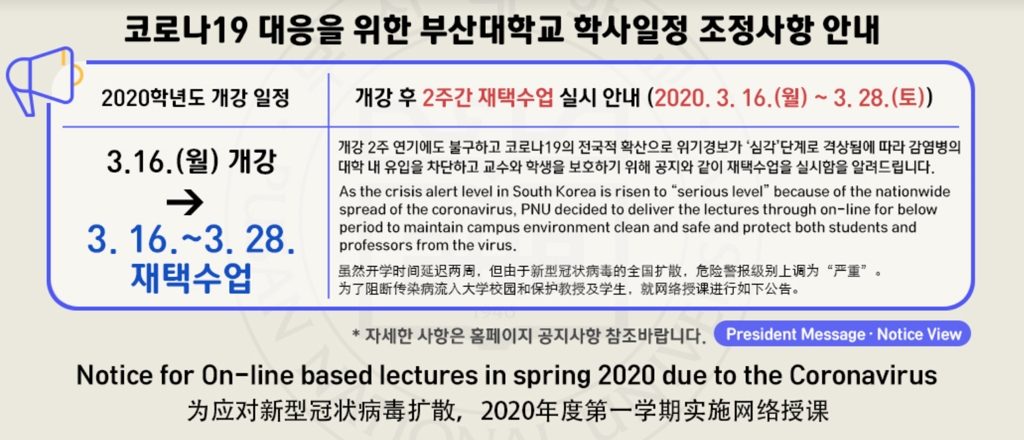 °³° ¿¬±âÇÑ ºÎ»ê´ë 2ÁÖ°£ ÀçÅüö¾÷ ½Ç½Ã °øÁö¹® [ºÎ»ê´ë ȨÆäÀÌÁö. ÀçÆÇ¸Å ¹× DB ±ÝÁö] (ºÎ»ê=¿¬ÇÕ´º½º) ±è¼±È£ ±âÀÚ = ºÎ»ê´ë°¡ 2ÁÖ°£ °³°À» ¿¬±âÇÑ ÀÌÈÄ¿¡µµ Äڷγª19 °¨¿°À» ¿ì·ÁÇØ ¿Â¶óÀÎ ÀçÅüö¾÷À» Çϱâ...