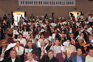 2008³â ±Ý°»ê¿¡¼ ¿¸° 6.15³²ºÏ°øµ¿¼±¾ð 8Áֳ⠱â³ä ¹ÎÁ·ÅëÀÏ´ëȸ ¸ð½À. 8¡¤15 °øµ¿Çà»ç Æò¾ç °³ÃÖ ÀÔÀå °í¼ö¡¦°øµ¿Çà»ç ¹«»ê ½Ã»ç (¼¿ï=¿¬ÇÕ´º½º) Â÷Áö¿¬ ±âÀÚ = ºÏÇÑÀº 16ÀÏ ³²ºÏ ¹Î°£´Üü°¡ ÃßÁøÇÏ´Â...