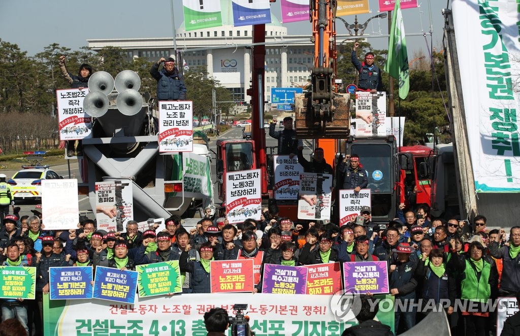 '³ëÁ¶ÇÒ ±Ç¸®¸¦'(¼¿ï=¿¬ÇÕ´º½º) ¼¸í°ï ±âÀÚ = 2ÀÏ ¿ÀÀü ¼¿ï ¿©Àǵµ »ê¾÷ÀºÇà ¾Õ¿¡¼ ¹ÎÁÖ³ëÃÑ °Ç¼³³ëÁ¶°¡ ¿¬ 4¡¤13 °Ç¼³±â°è ÃÑÆÄ¾÷ ¼±Æ÷ ±âÀÚȸ°ß¿¡¼ Âü°¡ Á¶ÇÕ¿øµéÀÌ Æ¯¼ö°í¿ë³ëµ¿ÀÚ ³ëµ¿±âº»±Ç...