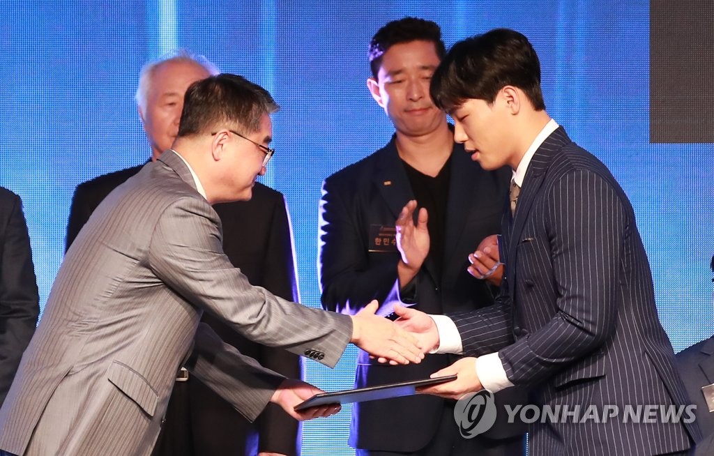 ´ëÇѹα¹ üÀ°»ó ¼ö»óÇÑ À±¼ººó(¼¿ï=¿¬ÇÕ´º½º) È«ÇØÀÎ ±âÀÚ = ³²ÀÚ ½ºÄÌ·¹Åæ ±¹°¡´ëÇ¥ À±¼ººóÀÌ 15ÀÏ ¼¿ï ¼ÛÆÄ±¸ ¿Ã¸²ÇÈÆÄÅ©ÅÚ¿¡¼ ¿¸° Á¦56ȸ ´ëÇѹα¹Ã¼À°»ó ½Ã»ó½Ä ¹× 2018³â üÀ°¹ßÀüÀ¯...
