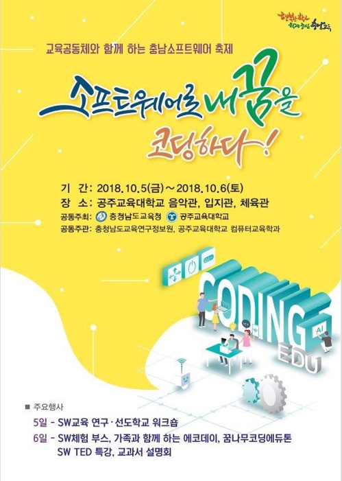 2018 Ãæ³²¼ÒÇÁÆ®¿þ¾î(SW)ÃàÁ¦ Æ÷½ºÅÍ[Ãæ³²±³À°Ã» Á¦°ø=¿¬ÇÕ´º½º] (È«¼º=¿¬ÇÕ´º½º) Á¤Âù¿í ±âÀÚ = Ãæ³²µµ±³À°Ã»Àº ´ÙÀ½ ´Þ 5¡6ÀÏ °øÁÖ±³À°´ëÇб³¿¡¼ '¼ÒÇÁÆ®¿þ¾î·Î ³» ²ÞÀ» ÄÚµùÇÏ...