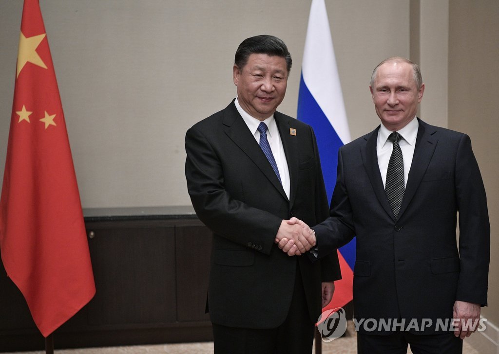 Áß±¹¡¤·¯½Ã¾Æ Á¤»ó, ¿Ãµé¾î ¼¼¹øÂ° ȸµ¿ <ÀÚ·á»çÁø > ¼ÕÀâÀº ½ÃÁøÇΰú Ǫƾ (º£ÀÌ¡=¿¬ÇÕ´º½º) ½ÉÀçÈÆ ƯÆÄ¿ø = ½ÃÁøÇÎ(ã§ÐÎøÁ) Áß±¹ ±¹°¡ÁÖ¼®°ú ºí¶óµð¹Ì¸£ Ǫƾ ·¯½Ã¾Æ ´ëÅë·ÉÀÌ ÁÖÇѹ̱ºÀÇ »çµå...