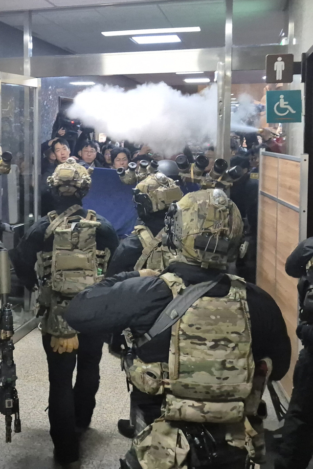 Áö³ 4ÀÏ »õº® ±¹È¸¿¡ ÁøÀÔÇÏ´Â °è¾ö±ºÀ» ±¹È¸ Á÷¿øµéÀÌ ¼Òȱ⸦ »Ñ¸®¸ç ¸·°í ÀÖ´Ù. À±¼®¿ ´ëÅë·ÉÀÌ 12ÀÏ ´ë±¹¹Î ´ãȸ¦...