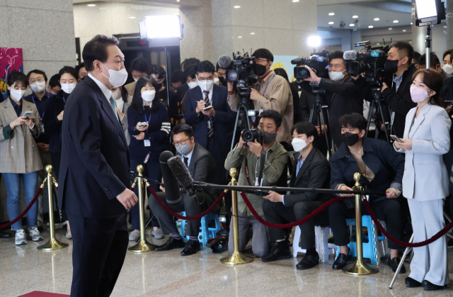 À±¼®¿ ´ëÅë·ÉÀÌ 13ÀÏ ¿ÀÀü ¼¿ï ¿ë»ê ´ëÅë·É½Ç û»ç¿¡¼ Ãâ±Ù±æ ±âÀÚµé°ú ÁúÀÇÀÀ´äÀ» ¸¶Ä£ µÚ Áý¹«½Ç·Î ÇâÇϰí ÀÖ´Ù.À±¼®¿&nb...