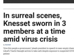 Äڷγª19¿¡ ½ä··ÇÑ À̽º¶ó¿¤ ÀÇȸ °³¿ø½Ä¡¦3¸í¾¿ ÃëÀÓ¼±¼