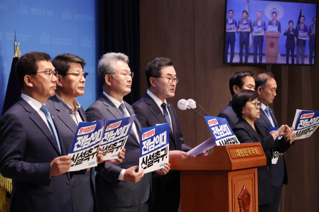 17ÀÏ ±¹È¸¿¡¼ ´õºÒ¾î¹ÎÁÖ´ç ¼Òº´Ã¶ ÀÇ¿ø µî Àü¶ó³²µµ Áö¿ª±¸ ÀÇ¿øµéÀÌ Àü³² Áö¿ª ÀÇ´ë ½Å¼³À» Ã˱¸ÇÏ´Â ±âÀÚȸ°ßÀ» Çϰí ÀÖ´Ù.&...