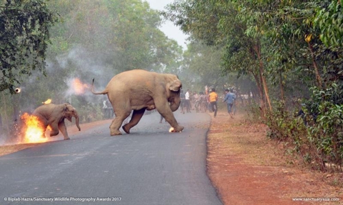 Àεµ ¼º¬°ñÁÖ¿¡¼ ±ºÁßÀÌ ´øÁö´Â ºÒµ¢À̸¦ ÇÇÇØ ´Þ¾Æ³ª´Â ÄÚ³¢¸® »çÁø. ÃÖ±Ù Àεµ ¾ß»ýµ¿¹°º¸È£ ÀâÁö '»ýÅ©Ãò¾î¸®'(SANCTUARY)°¡ ÁÖÃÖÇÑ »çÁø °æ¿¬´ëȸ¿¡¼ '¿ÃÇØÀÇ »ýÅ©Ãò¾î¸® ¾ß»ýµ¿¹° »çÁø°¡'»óÀ» ¹Þ¾Ò´Ù....