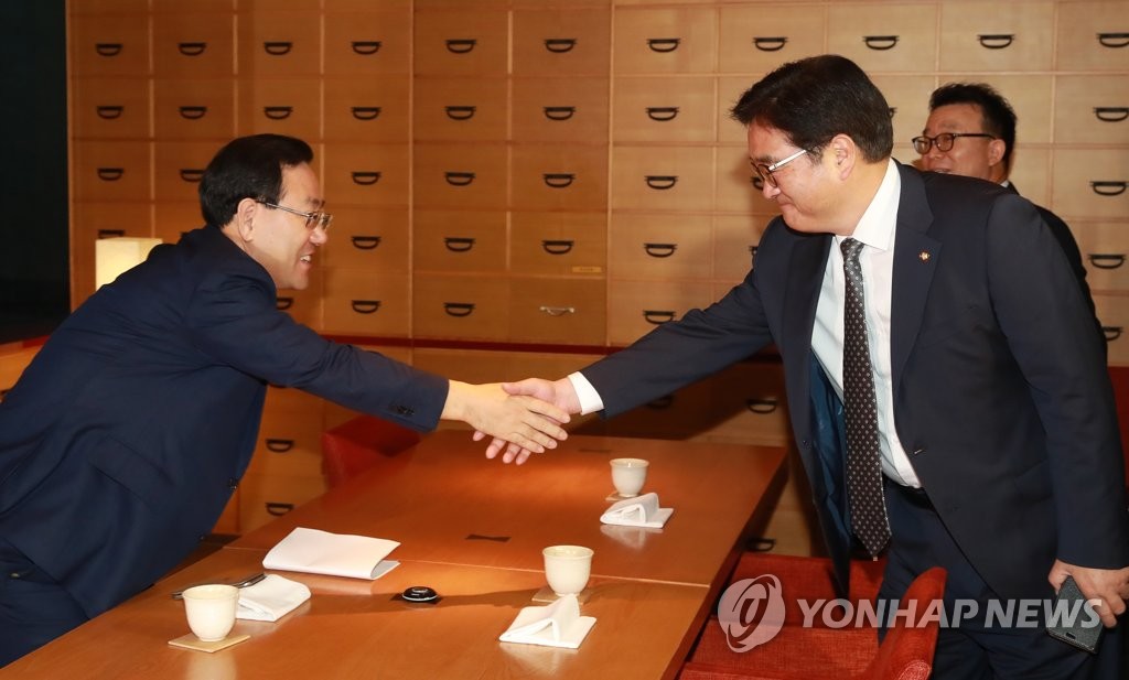 ¾Ç¼öÇÏ´Â ¿ì¿ø½Ä-ÁÖÈ£¿µ(¼¿ï=¿¬ÇÕ´º½º) È«ÇØÀÎ ±âÀÚ = ´õºÒ¾î¹ÎÁÖ´ç ¿ì¿ø½Ä ¿ø³»´ëÇ¥(¿À¸¥ÂÊ)°¡ 11ÀÏ ¿ÀÀü ¼¿ï ¿©ÀǵµÀÇ ÇÑ ½Ä´ç¿¡¼ ¿¸° ¿©¾ß ±³¼·´Üü 4´ç ¿ø³»´ëÇ¥ Á¶Âù ȸµ¿¿¡ Âü¼®ÇØ ¹Ù¸¥Á¤´ç ÁÖÈ£¿µ ¿ø...