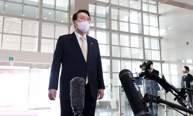 À±¼®¿ ´ëÅë·ÉÀÌ 10ÀÏ ¿ÀÀü ¼¿ï ¿ë»ê ´ëÅë·É½Ç û»ç·Î Ãâ±Ù, ±âÀÚµé°ú ÁúÀÇÀÀ´äÀ» Çϰí ÀÖ´Ù. À± ´ëÅë·ÉÀº 10ÀÏ ¼¿ï&nbs...