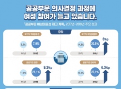 °ø°ø±â°ü åüÀÓ¿ø ºñÀ² 21%¡¦ÇÑÇØ 125¸í ´Ã¾ú´Ù '°ø°øºÎ¹® ¿©¼º´ëÇ¥¼º Á¦°í °èȹ' Áß°£Á¡°Ë¡¦12°³ Àü ºÐ¾ß ¸ñǥġ ´Þ¼º (¼¿ï=¿¬ÇÕ´º½º) ¾çÁ¤¿ì ±âÀÚ = ÃÖ±Ù 2³â°£ °ø°øºÎ¹®¿¡¼ ¿©¼º ´ëÇ¥¼ºÀÌ Å©°Ô Çâ»óÇÑ °Í...