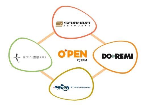 CJ E&M ½ÅÀÎÀÛ°¡ Áö¿ø»ç¾÷ ¼º°ú¿ÀÆæ ½ÅÀÎÀÛ°¡¿Í °è¾àÀ» ü°áÇÑ µå¶ó¸¶Á¦ÀÛ»ç ·Î°í (Á»ó´ÜºÎÅÍ ½Ã°è¹æÇâÀ¸·Î) »ïÈ³×Æ®¿÷½º, ½ºÆ©µð¿Àµå·¡°ï, ·Î°í½ºÇʸ§, µµ·¹¹Ì¿£ÅÍÅ×ÀÎ¸ÕÆ® (¼¿ï=¿¬ÇÕ´º½º) ¿À¼ö...