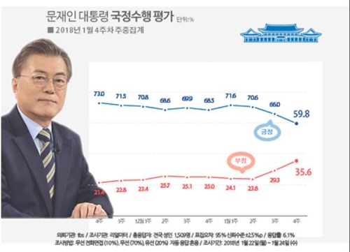 ¹® ´ëÅë·É ±¹Á¤ÁöÁöÀ² 59.8%·Î Ç϶ô¡¦ÃëÀÓÈÄ Ã¹ 50%´ë[¸®¾ó¹ÌÅÍ]