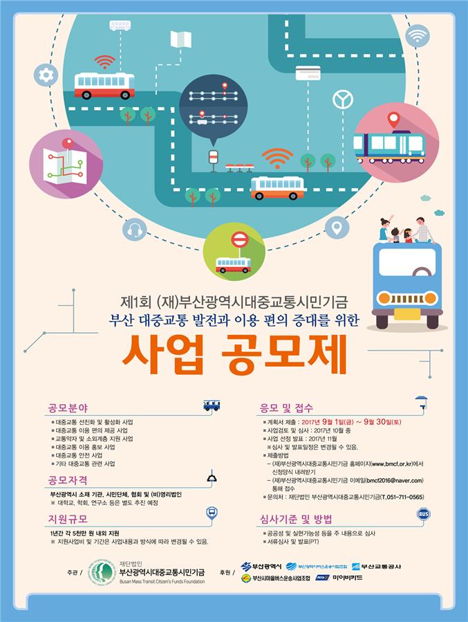 (Àç)ºÎ»ê±¤¿ª½Ã´ëÁß±³Åë½Ã¹Î±â±ÝÀº ¿ÃÇØ óÀ½À¸·Î ºÎ»ê ´ëÁß±³Åë ¹ßÀü°ú ÀÌ¿ë ÆíÀÇ Áõ´ë¸¦ À§ÇÑ »õ·Î¿î »ç¾÷À» ¹ß±¼Çϰí À̸¦ Áö¿øÇϱâ À§ÇÑ °ø¸ðÀüÀ» ½ÃÇàÇÑ´Ù°í 12ÀÏ ¹àÇû´Ù. À̹ø °ø¸ðÁ¦´Â ºÎ»ê±¤¿ª½Ã¿¡ ...