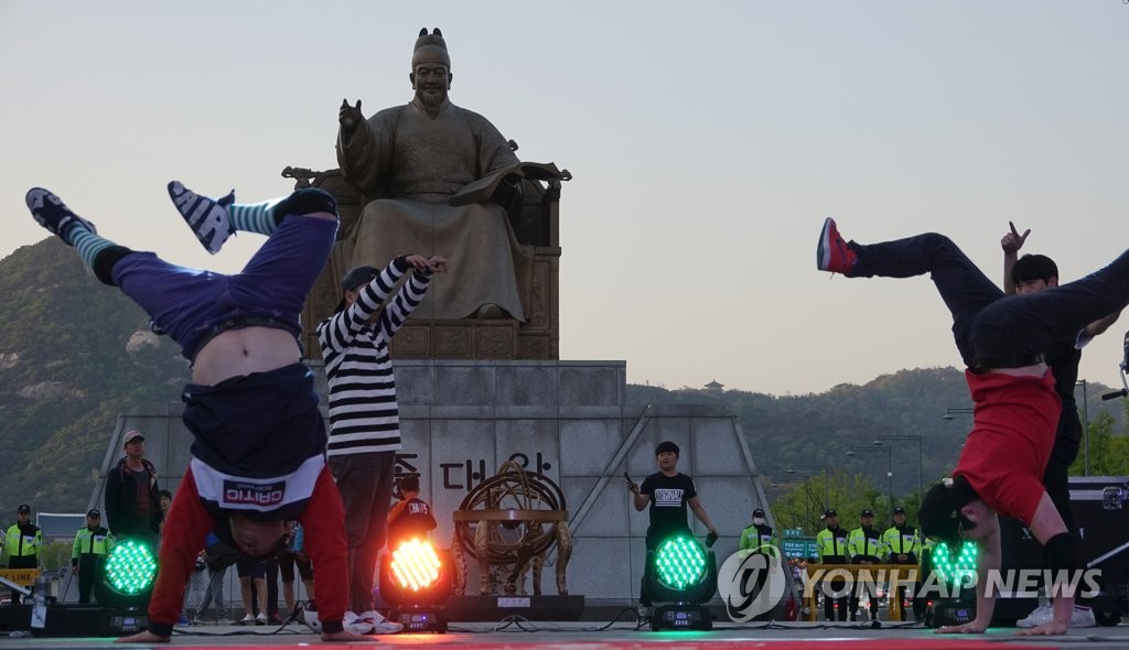 ¹®Ã¼ºÎ, »ç¾÷ ´ëÆø °³Æí¡¦¹Î°£¹ýÀÎ '»ýȰ¹®ÈÁøÈï¿ø' »ç¾÷ ÃѰý ´ë¿Õ´ÔÀÌ ¿ô´Â´ÙÁö³ 4¿ù '¹®È°¡ ÀÖ´Â ³¯'ÀÎ 27ÀÏ ¼¿ï Á¾·Î±¸ ±¤È¹® ±¤Àå ¼¼Á¾´ë¿Õ»ó ¾Õ¿¡¼ ÀͽºÆ®¸² Å©·ç ºñº¸ÀÌÆÀÀÌ °ø¿¬ÇÏ´Â ¸ð½À [¿¬...