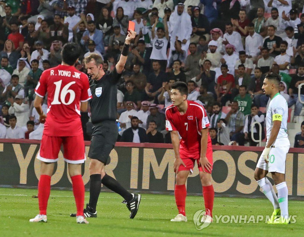 »ç¿ìµðÀü ·¹µåÄ«µå ¹Þ´Â ºÏÇÑ Çѱ¤¼º(µÎ¹ÙÀÌ AFP=¿¬ÇÕ´º½º) 8ÀÏ(ÇöÁö½Ã°£) ¾Æ¶ø¿¡¹Ì¸®Æ®(UAE) µÎ¹ÙÀÌÀÇ ¸·Åù ºó ¶ó½Ãµå °æ±âÀå¿¡¼ ¿¸° »ç¿ìµð¾Æ¶óºñ¾Æ¿Í ºÏÇѰúÀÇ 2019 ¾Æ½Ã¾ÆÃ౸¿¬¸Í(AFC) ¾Æ½Ã¾È...