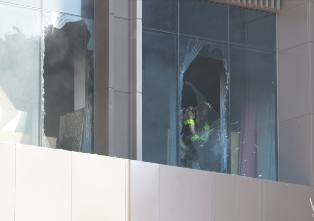 14ÀÏ ºÎ»ê ±âÀ屺 ¹Ý¾áÆ®¸®È£ÅÚ ½ÅÃà °ø»çÀå ÈÀç ÇöÀå¿¡¼ ¼Ò¹æ´ë¿øµéÀÌ ¿¬±â¸¦ »©³»±â À§ÇØ À¯¸®Ã¢À» ±ú°í ÀÖ´Ù. ºÎ»ê¿¡¼ ¿Ã...