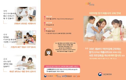 2³â ÀÌ»ó Àå±â ¹ÌÁ¾»çÀÚ 40½Ã°£ Á÷¹«±³À° À̼ö ÇÊ¿ä (¼¿ï=¿¬ÇÕ´º½º) ¼Çѱ⠱âÀÚ = º¸°Çº¹ÁöºÎ´Â ¸¸ 2³â ÀÌ»ó ¾î¸°ÀÌÁý¿¡¼ ÀÏÇÏÁö ¾Ê´Ù°¡ ´Ù½Ã ÀÏÇÏ·Á´Â º¸À°±³»ç¸¦ ´ë»óÀ¸·Î 2ÀϺÎÅÍ Çѱ¹º¸À°ÁøÈï¿ø¿¡¼ »ç...