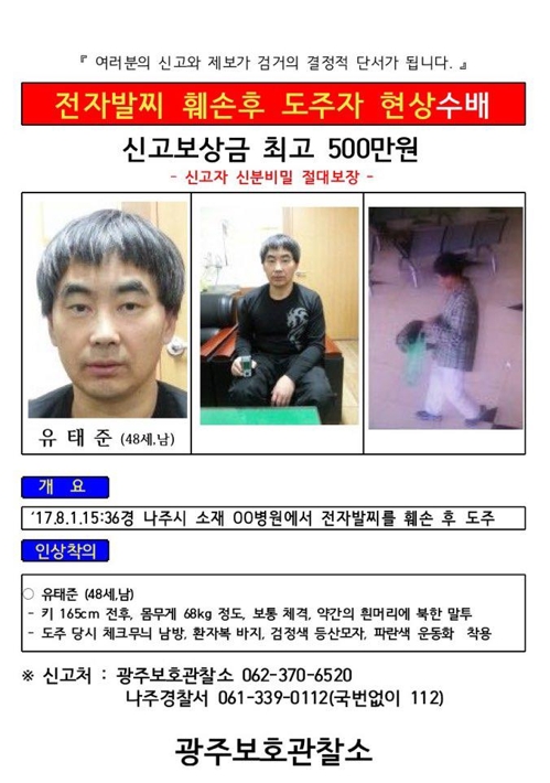 (³ªÁÖ=¿¬ÇÕ´º½º) À徯¸§ ±âÀÚ = Á¤½Åº´¿ø¿¡¼ ÀüÀÚ¹ßÂ ²÷°í ´Þ¾Æ³ »ìÀι̼ö Àü°úÀÚÀÇ Çà¹æÀ» 4Àϰ ÃßÀû ÁßÀÎ ±³Á¤´ç±¹°ú °æÂûÀÌ °ø°³¼ö»ç·Î ÀüȯÇß´Ù. ÀüÀÚ¹ßÂî ²÷°í ´Þ¾Æ³ À¯ÅÂÁؾ¾ °ø°³¼ö¹è Àü´Ü [Àü...