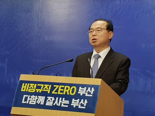 (ºÎ»ê=¿¬ÇÕ´º½º) ±è»óÇö ±âÀÚ = ºÎ»ê½Ã°¡ Áö³ÇØ ¸» ±â°£Á¦ ±Ù·ÎÀÚÀÇ Á¤±ÔÁ÷ Àüȯ¿¡ ÀÌ¾î ¿ÃÇØ ¸»±îÁö »ó½Ã¡¤Áö¼ÓÀû ¾÷¹«¿¡ Á¾»çÇÏ´Â ¿ë¿ªÁ÷¿øÀ» Á¤±ÔÁ÷À¸·Î ÀüȯÇÑ´Ù. ¿À°Åµ· ºÎ»ê½ÃÀåÀº 14ÀÏ ±âÀÚ°£´ãȸ¸¦ ¿¾î...